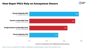 “When super PACs accept massive dark money contributions, it undercuts the principles of transparency that serve as the bedrock of our anti-corruption laws,” said Issue One Director of Money in Politics Reform Michael Beckel. “Without transparency, there’s no accountability. Voters across the country and across the ideological spectrum lose when they’re kept in the dark about the wealthy donors and special interests using huge sums of dark money to buy access and influence with politicians.”
